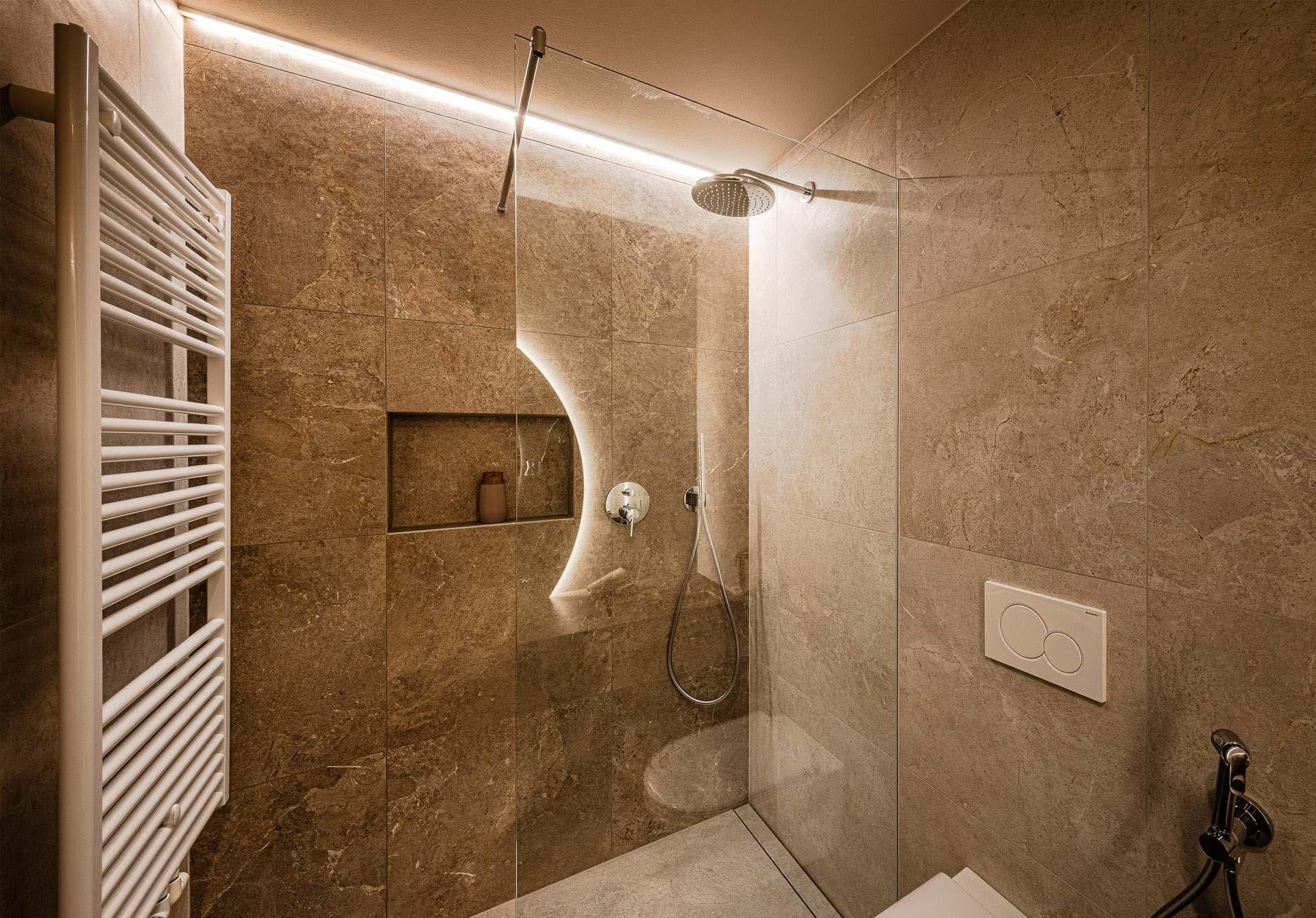 Wohnung Conturines Dachbodenwohnung auf zwei Ebenen mit Balkon für 4 Personen Kochnische mit Essecke Wohnraum mit Balkon Doppelbettzimmer Dachgeschoss mit Doppelbettcouch Dusche