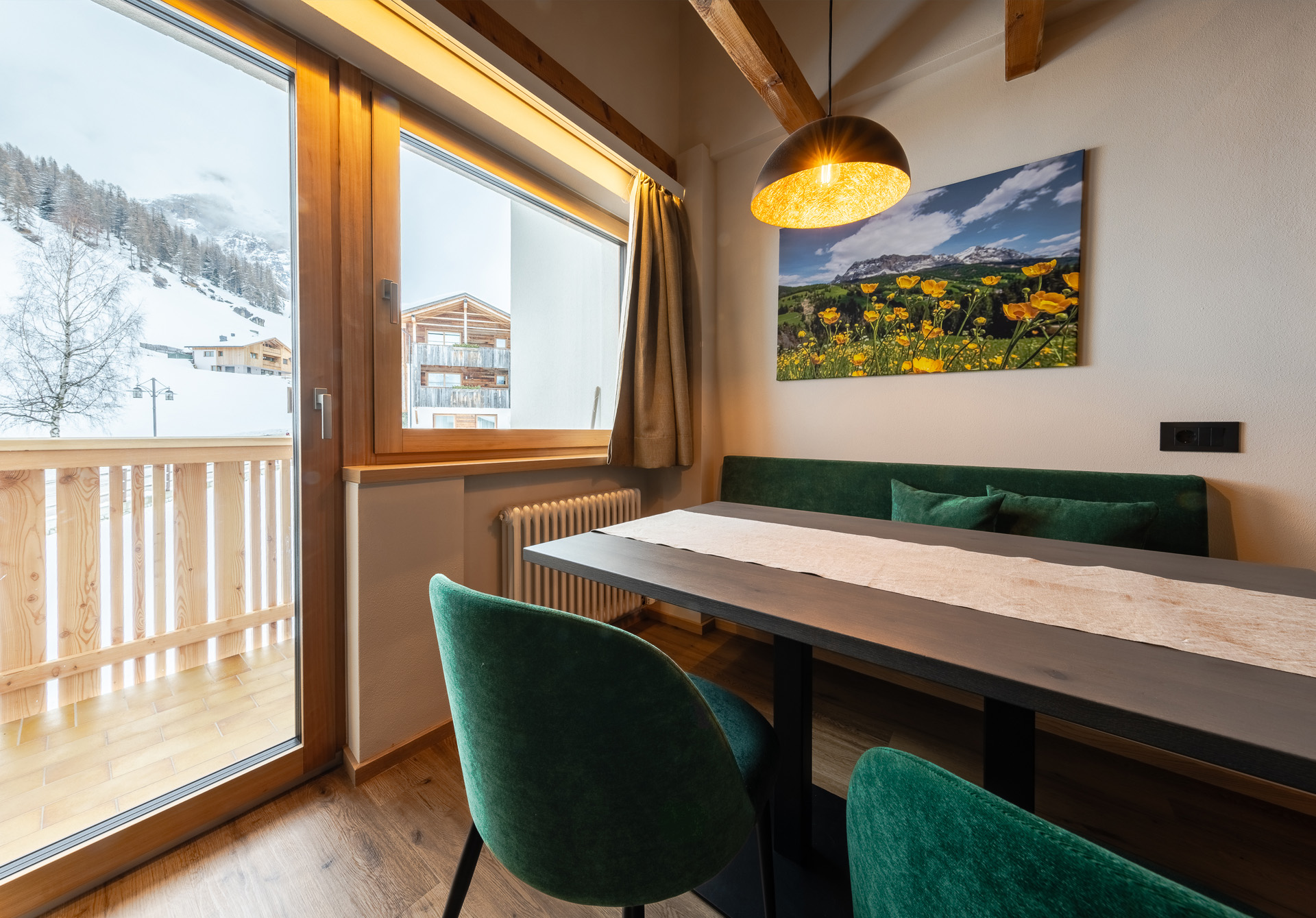 Wohnung Conturines Dachbodenwohnung auf zwei Ebenen mit Balkon für 4 Personen Kochnische mit Essecke Wohnraum mit Balkon Doppelbettzimmer Dachgeschoss mit Doppelbettcouch Dusche